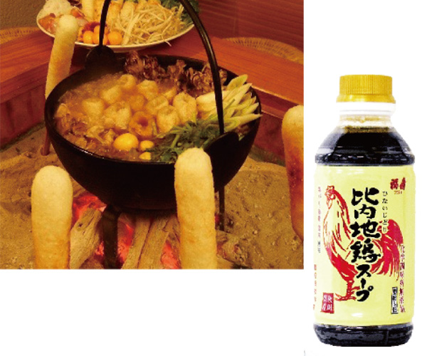 明治5年創業の老舗蔵元が、日本三大地鶏のひとつ比内地鶏の鶏がら、鶏肉からだしを取り、自家製醤油で味付けた万能つゆ