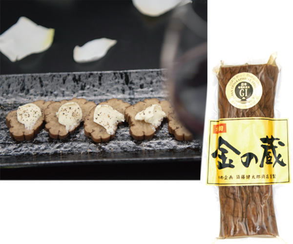 秋田伝統の昔ながらの製法にこだわり、燻した大根をたっぷりの米ぬかを使って砂糖と塩だけで100日以上じっくりと漬け込んだ希少ないぶりがっこです。