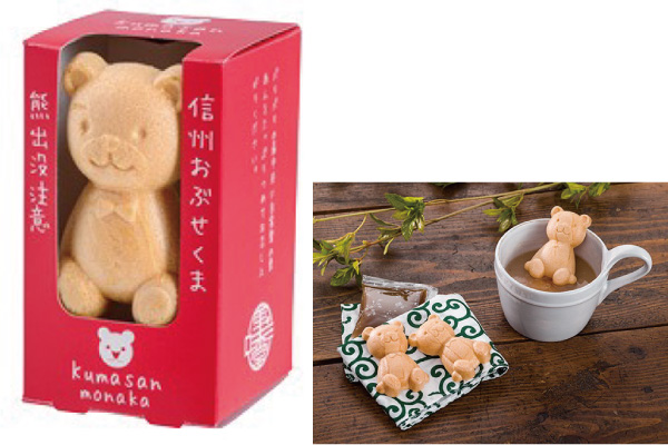 くまさんの形のもなか皮に自家製栗餡を詰めた手作りもなかです。