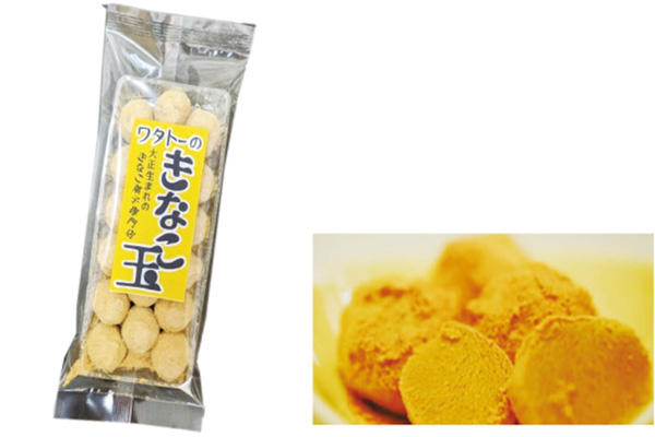 伝統菓子五家宝に使う糖蜜をきな粉とよく絡ませ、きな粉棒よりも柔らかく仕上げ、食べやすく一口サイズのボール状にした新感覚のきな粉菓子です。