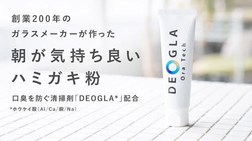 抗菌・消臭剤メーカーの技術で開発したオリジナル成分DEOGLA(デオグラ)配合! 信頼できる機能と効能を兼ね備えた「口臭ケア」特化ブランドとして、自信を持てる爽やかな生活を提供します。目標の700%超の応援購入を達成した「口臭予防ハミガキ」を試してみて。