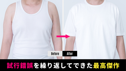 ビジネスシーンもプライべートも、男性をもっと自由に――。そんな問題意識から、体形や乳首の透けを気にすることなく着られるTシャツを開発しました。前面を二層構造にする特殊デザインがその特徴です。自分用にも、パートナーへのプレゼントにも。