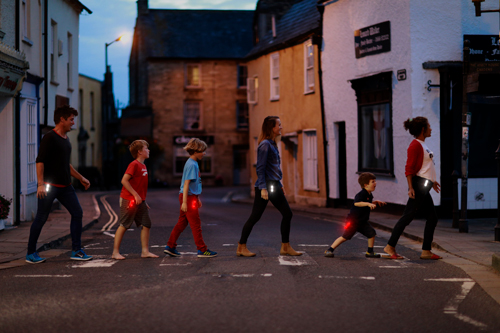 ある英国人が「親友の妹の事故死」という悲しい出来事を一つのきっかけとして開発しました。動き続ける限り光り続け、ウォーキングにも使用可能です。