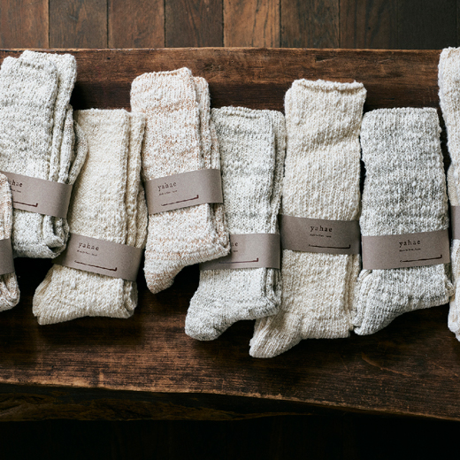 柔らかい風合いと自然な色あいで、ほっとした気持ちになれる「y a h a e」のソックス