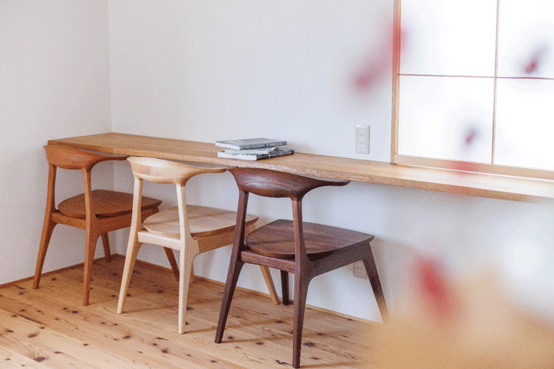 まず取りかかったのはイス作りだ。脳裏にあったのは、デンマークの巨匠ハンス・J ・ウェグナーのイス。「世界一座り心地がよいと言われていて、どこから見ても美しい。私もそういうイスをつくりたいと思っていました」と長内さん。